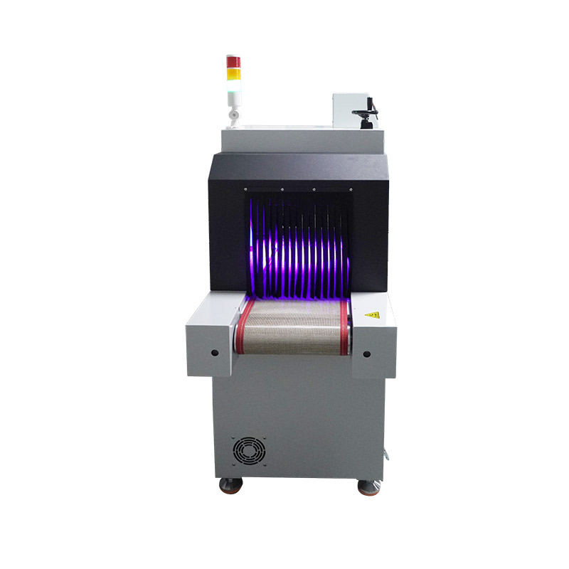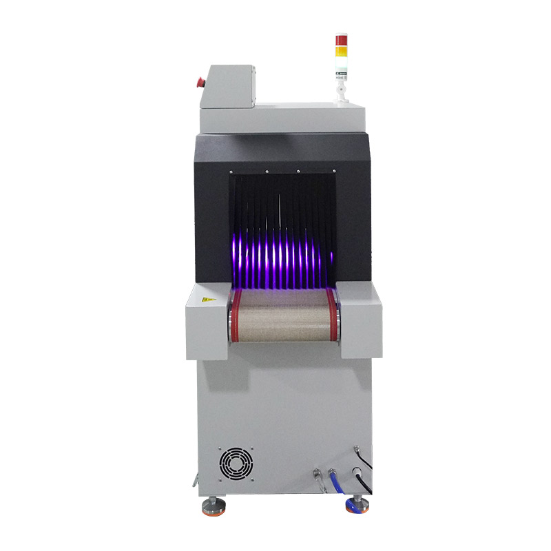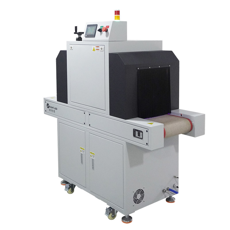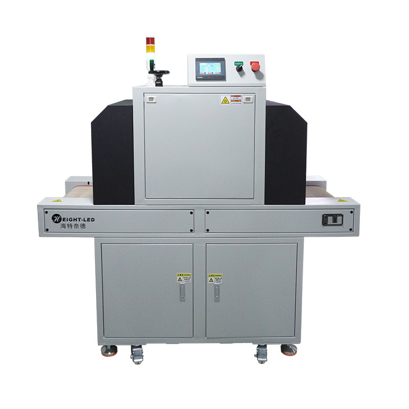 2、設備提供連續模式和后端模式可選,連續模式下,點擊啟動按鈕,UV機傳送帶及UVLED一直工作,點擊停止按鈕停止UV機工作;后端模式下,點擊啟動按鈕,UV機傳送帶及UVLED開始工作,當后端傳感器感應到產品后,傳送帶及UVLED停止工作,當產品拿走后繼續進入下一個循環。