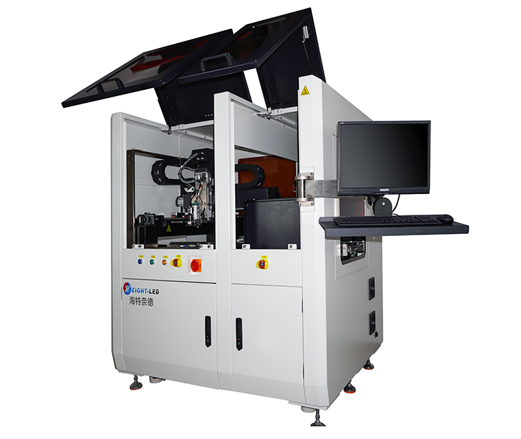 CCD dispensing and curing machine equipment supports two-stage track, SMEMA online function. Dispensing and curing machine supports laser distance measurement, automatically adapting to changes in substrate height and product height.