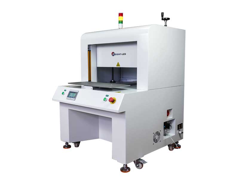 2. uvled dispensing automation curing equipment to provide manual mode and automatic mode optional, manual mode, into the manual debugging interface, you can independently operate the tray running, determine the product curing position, but also can independently operate the UVLED on and off; automatic mode, both hands at the same time press the start button (two buttons are not pressed at the same time within 0.5S, the judgment is invalid), the product moves to the Curing position, shading door closed and open the UVLED curing (in the process of shading door operation, the safety grating trigger, the device stops immediately), curing is complete, shading door open, the product back to the initial position, waiting for the product to take away.