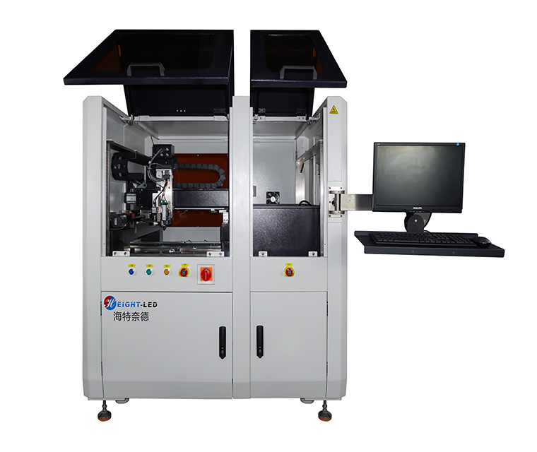 CCD點膠固化機設備支持兩段式軌道,SMEMA 聯機功能。點膠固化機設備支持激光測距,自動適應基板高度和產品高度變化。