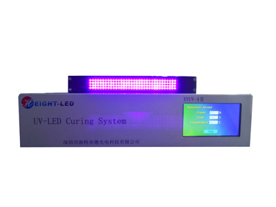 UVLED照射頭采用進(jìn)口高強(qiáng)度紫外LED集成,UV光譜波長(zhǎng)為365nm、385nm、395nm、405nm可選,采用水冷散熱,
