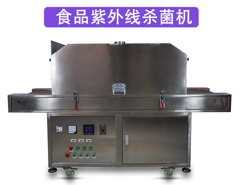 5、各組殺菌燈可單獨(dú)控制, 增加可調(diào)整 UV 燈管角度的調(diào)節(jié)裝置, 燈管總長589mm, 波長為 254.7mm, 殺菌率可以達(dá)到 95%)。裝有自動(dòng)計(jì)時(shí)器, 可隨時(shí)監(jiān)控?zé)艄艿氖褂脮r(shí)間, 方便燈管的更換。如產(chǎn)品為可掉渣類, 可采用托盤放在輸送帶上殺菌。