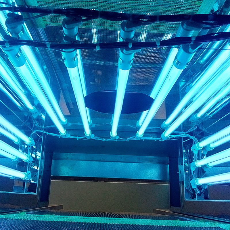 1、殺菌燈管長度:589 mm,采用 16 支 20W 紫外線殺菌專用燈管。均勻分布在爐腔內(nèi)上下左右各方位裝置。有 UV 反光裝置(內(nèi)鏡面不銹鋼板),大大提高紫外光的使用率可達(dá) 95%( 殺菌時(shí)間為 1 分鐘左右)。