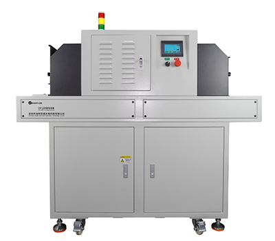 2、設(shè)備提供連續(xù)模式、后端模式、區(qū)域模式可選;連續(xù)模式下:點擊啟動按鈕,UV機傳送帶及 UVLED 一直工作,點擊停止按鈕 UV 機停止工作;后端模式下:點擊啟動按鈕,UV機傳送帶及 UVLED 開始工作,當后端傳感器感應(yīng)到產(chǎn)品后,傳送帶及 UVLED 停止 工作,當產(chǎn)品拿走后繼續(xù)進入下一個循環(huán);區(qū)域模式下:點擊啟動按鈕 UV 機傳送帶開 始工作,當區(qū)域前端檢測到產(chǎn)品后 UVLED 開始工作,當區(qū)域后端檢測到產(chǎn)品離開 后,UVLED 停止工作,當后端傳感器感應(yīng)到產(chǎn)品,傳送帶停止工作,當拿走產(chǎn)品后繼續(xù) 進入下一個循環(huán)。