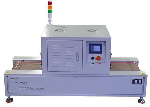 2、設(shè)備提供連續(xù)模式和后端模式可選,連續(xù)模式下,點擊啟動按鈕,UV機傳送帶及UVLED一直工作,點擊停止按鈕停止UV機工作;后端模式下,點擊啟動按鈕,UV機傳送帶及UVLED開始工作,當(dāng)后端傳感器感應(yīng)到產(chǎn)品后,傳送帶及UVLED停止工作,當(dāng)產(chǎn)品拿走后繼續(xù)進(jìn)入下一個循環(huán)。