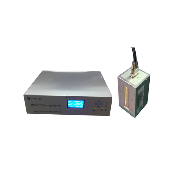 This is a high-performance UVLED curing system. The system mainly includes a controller and a UVLED irradiation head. The UV spectrum wavelength is 385nm. It uses forced air cooling to dissipate heat. The effective curing area is 100X20mm.